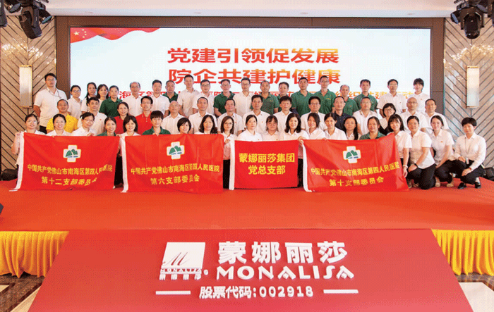 6月12日上午,蒙娜丽莎集团党总支部与南海区第四人民医院党委(以下简称:四院党委)在蒙娜丽莎集团知行生活馆 6 楼知行厅,联合开展了一场主题为“党建引领促发展,院企共建护健康”的党建共建活动,活动以“会议+讲座”的形式开展,旨在让双方党组织互相了解、增进交流、传授专业健康护理和养生知识。