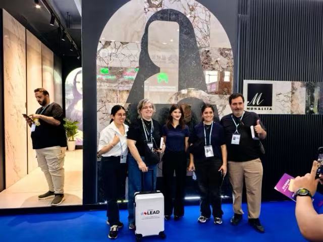 今年的广交会,蒙娜丽莎展出了多款2025年最新上市的无极·石界新品和1060×1600mm规格经典石韵系列,受到众多客商的欢迎。佛山市副市长徐童、佛山国际商会李德等到蒙娜丽莎展位前打卡,为参展企业加油助威!