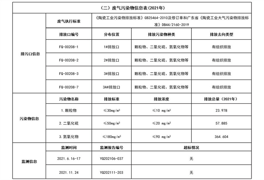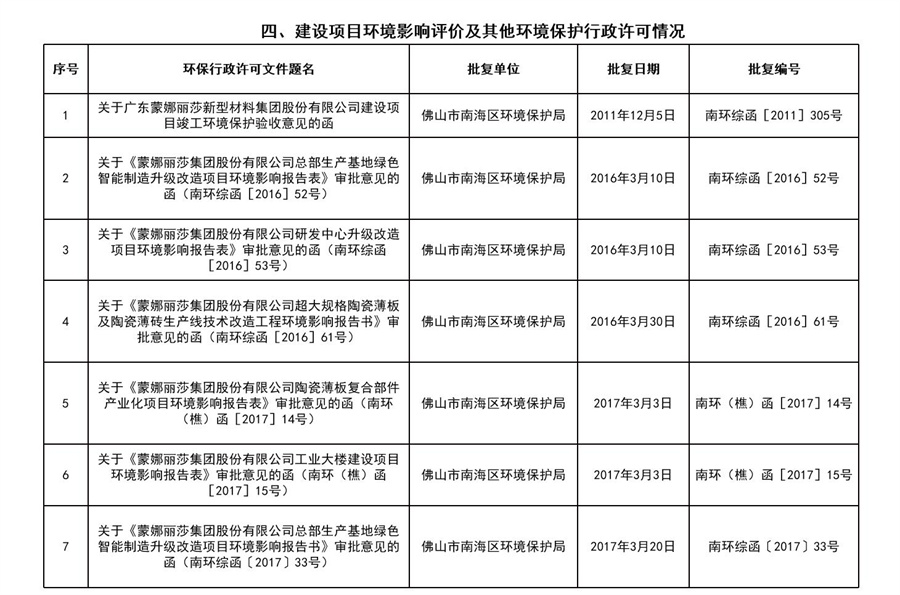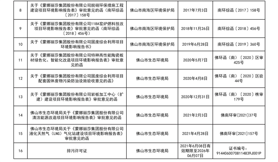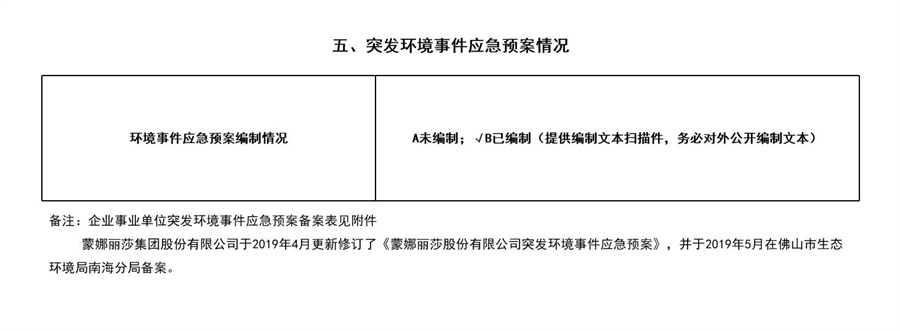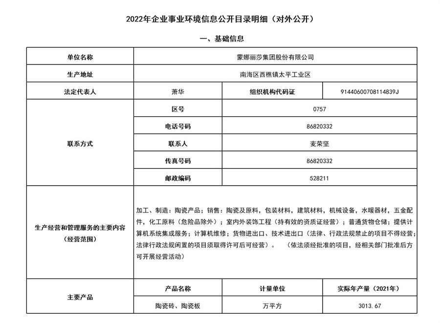 2022年蒙娜丽莎集团企业事业环境信息公开目录明细